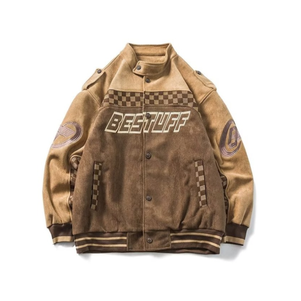 3D Embossed Lettering Suede Jacket